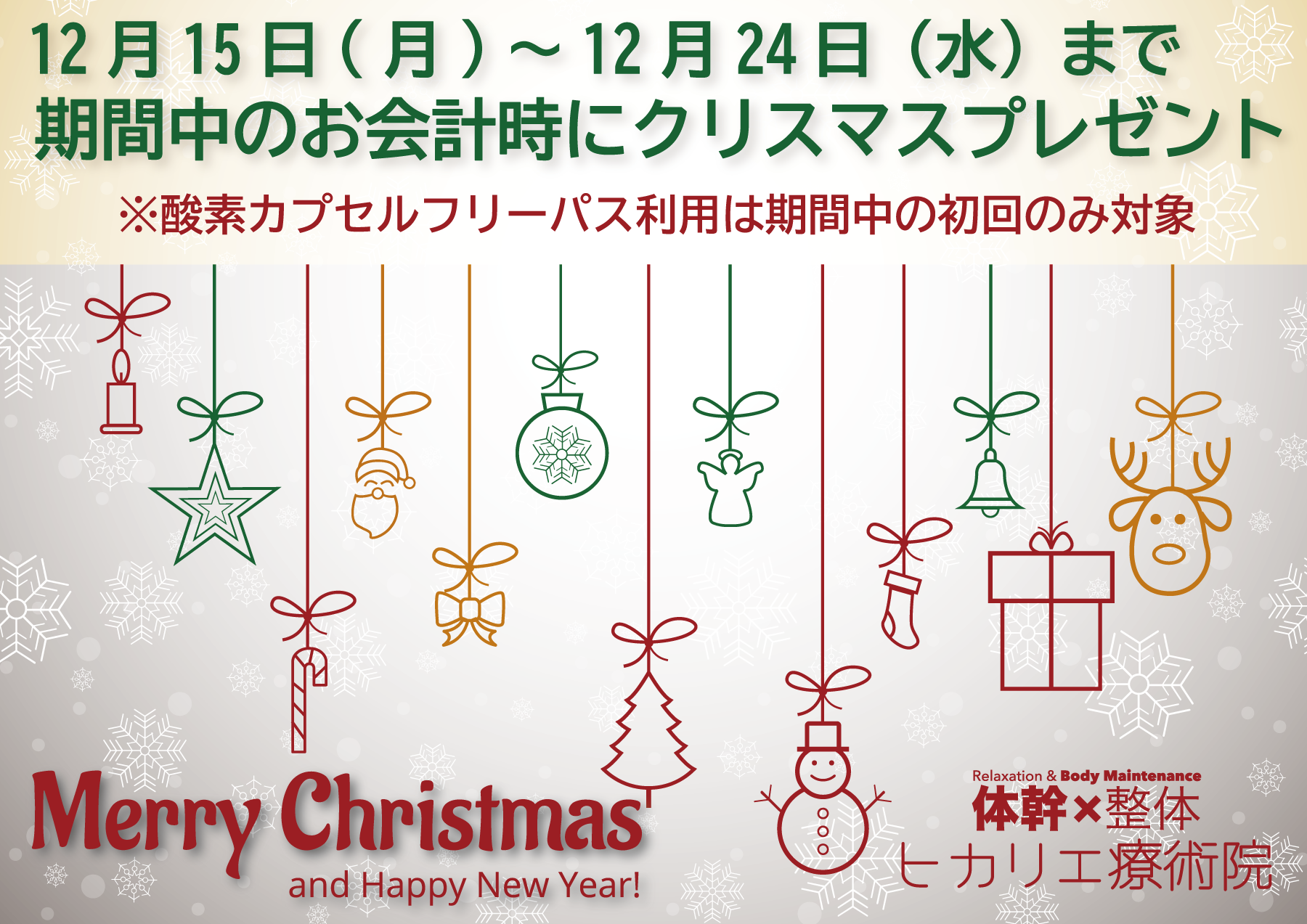 この機会にボディメンテナンスやケア、高圧酸素カプセルのご利用、大人気のBMZインソールのお買い求めはこの期間ならクリスマスプレゼントもらえます♪
